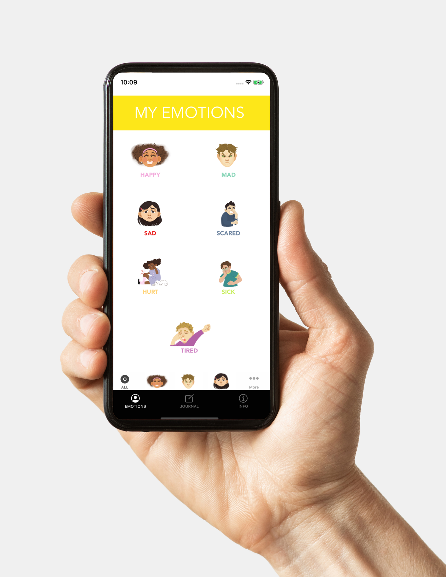 This app covers the following emotions/feelings: Happy, Sad, Angry, Scared, Surprised, Tired, Curious, Suspicious and Sick.